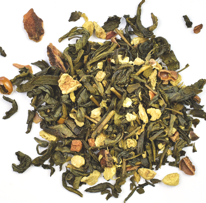 Ce déliceux mélange à base de thé vert relevé par des éclats de gingembre et de citron, est adoucit par les douces notes de badiane. Un mélange à plusieurs lectures qui réveillera tout vos sens !